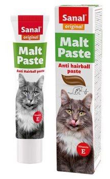 Sanal Мальт паста для кошек — специальная паста со вкусом мяса, способствующая выведению проглоченных комков шерсти естественным путем, без рвоты и образования запора.