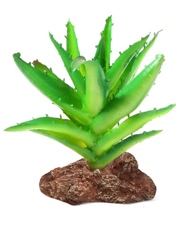 Пластиковое растение на подставке из полиэфирной смолы подходит для оформления пустынных, полупустынных и тропических террариумов. Неоспоримое преимущество искусственных растений в том, что им не нужен полив, в них не заводятся паразиты и грибки, их легко мыть и дезинфицировать, и прослужат они неизмеримо дольше, чем живые растения.