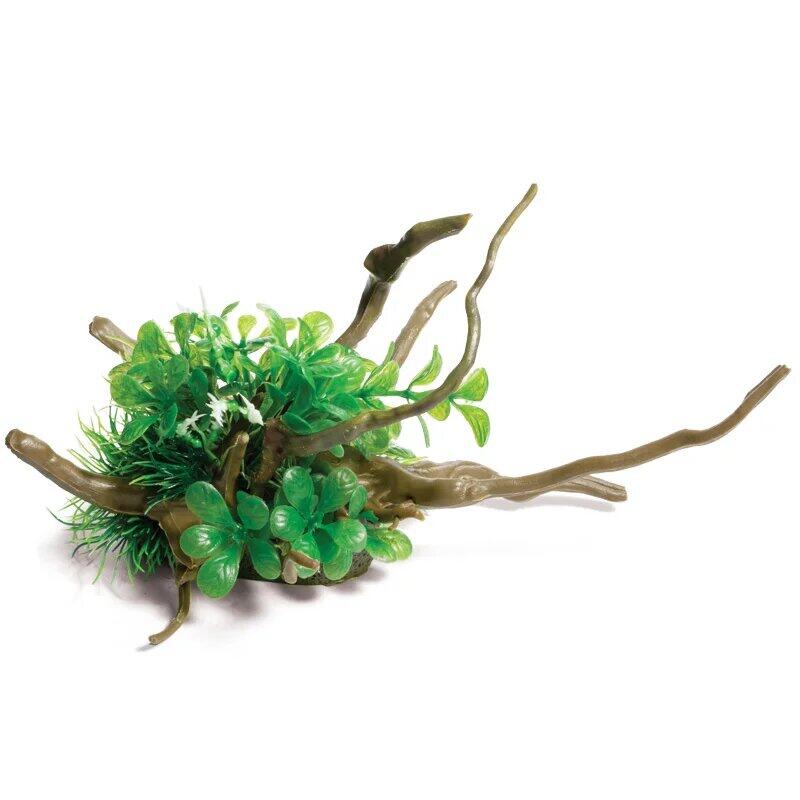 Грот "Коряга с растениями" — функциональное и реалистичное украшение для аквариума и террариума в виде изогнутой коряги и растительностью.