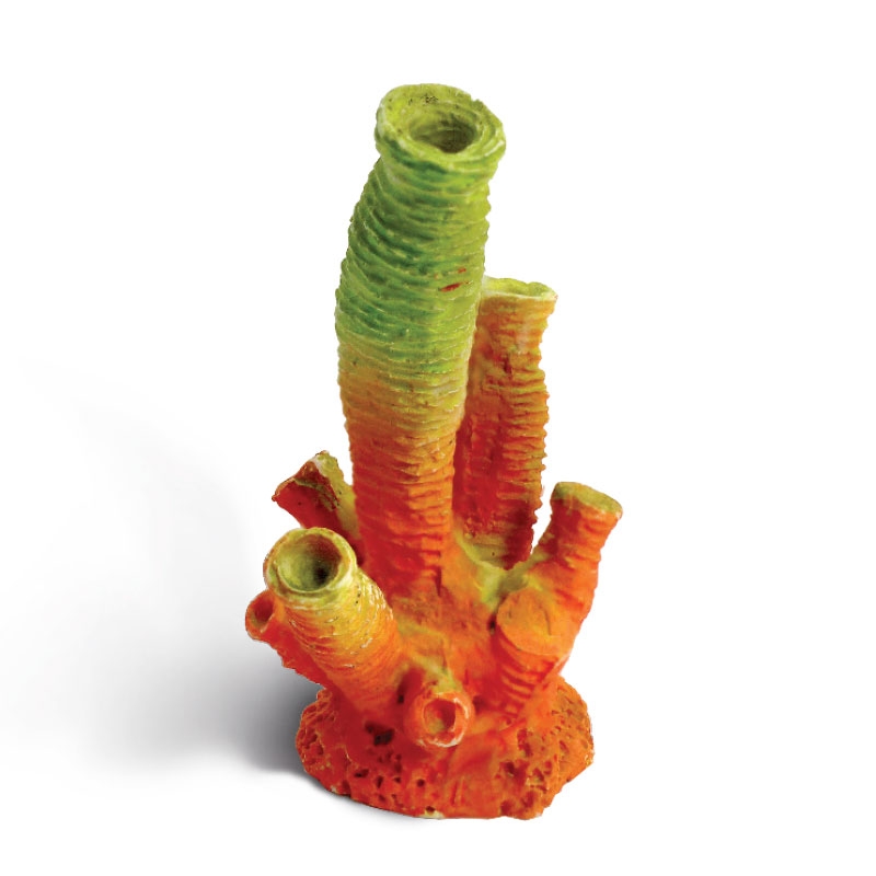 Коралл выполнен из полиэфирной смолы, поэтому он безвреден для обитателей аквариума и нейтрален к водному балансу. Подойдет для небольших аквариумов.